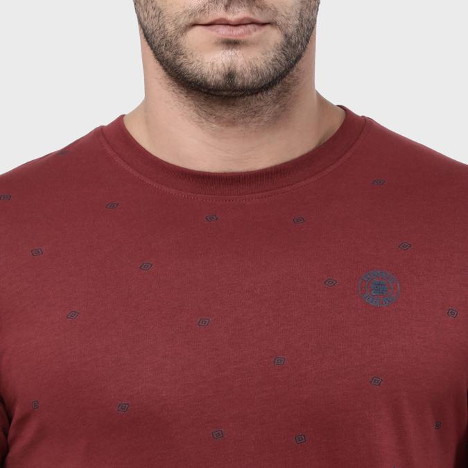 Make An Addition To Your Casual Wear With This All Over Printed T-Shirt. It Features A Round Neckline And Short Sleeves That Will Lend Comfortable Wear While The Stripe Detail Adds To Its Interest. Team It With Jog Pants And Sneakers For A Trendy Appeal.