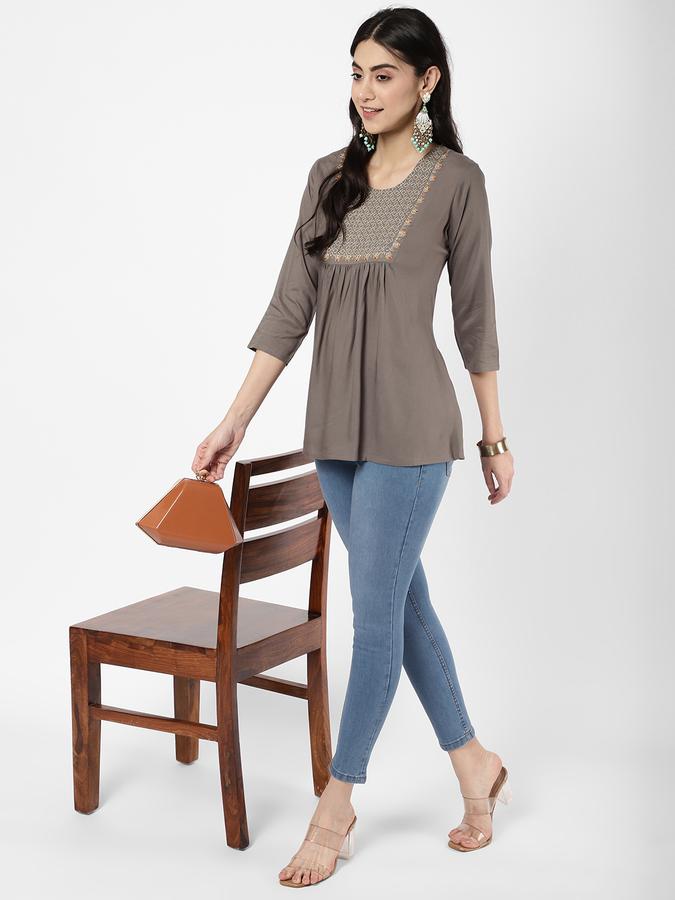 Ethnic Embroidered Flared Kurta Color : GREY Fabric : 100% RAYONDelivery details